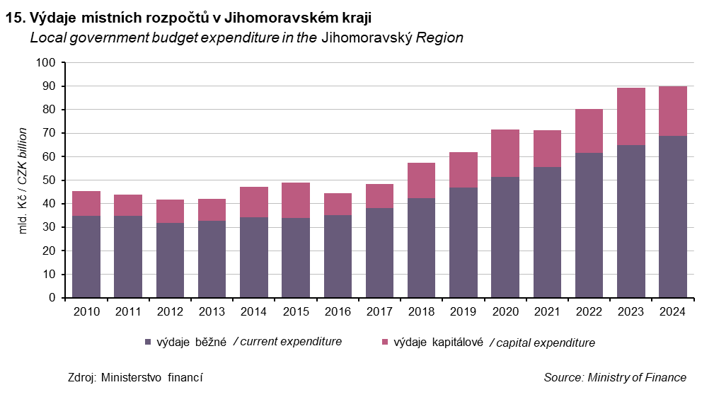 Graf 15 Výdaje místních rozpočtů v Jihomoravském kraji