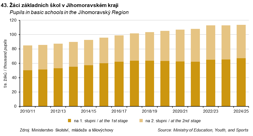 Graf 43 Žáci základních škol v Jihomoravském kraji