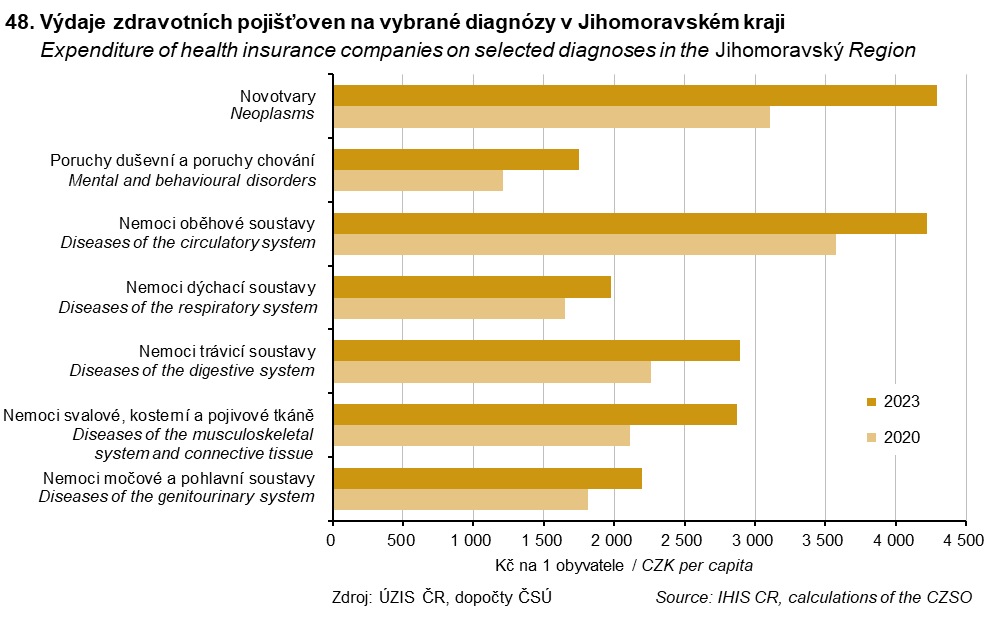 Graf 48 Výdaje zdravotních pojišťoven na vybrané diagnózy v Jihomoravském kraji