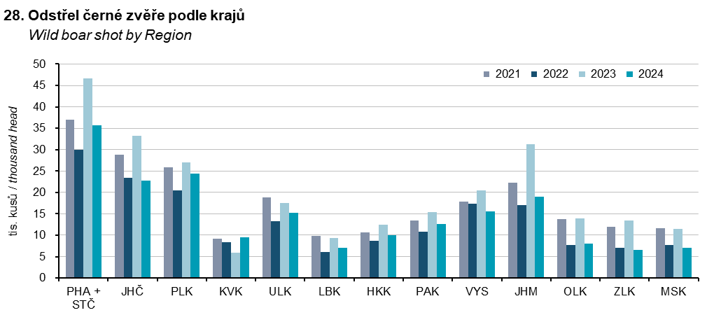 Graf 25 Hospodářská zvířata podle krajů k 31. 12. 2024