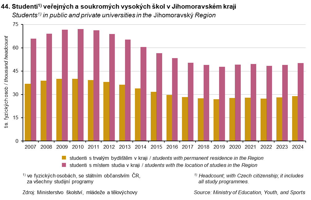 Graf 44 Studenti veřejných a soukromých vysokých škol v Jihomoravském kraji