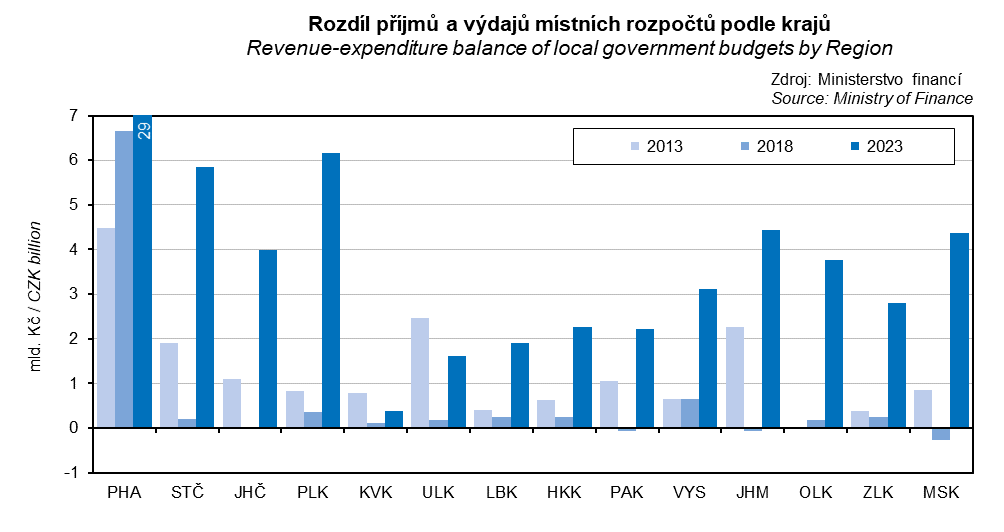 Graf 18 Rozdíl příjmů a výdajů místních rozpočtů podle krajů