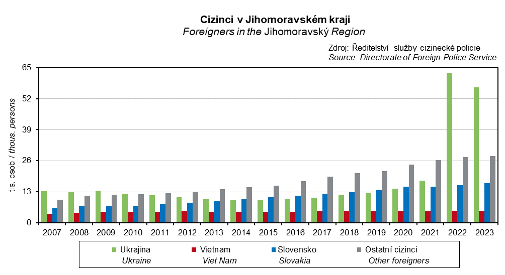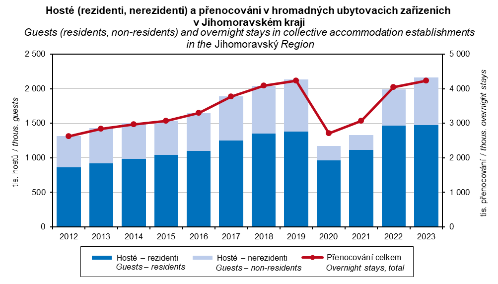 Graf 39 Hosté (rezidenti, nerezidenti) a přenocování v hromadných ubytovacích zařízeních v Jihomoravském kraji