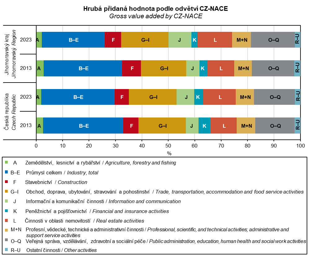 Graf 13 Hrubá přidaná hodnota podle odvětví CZ-NACE