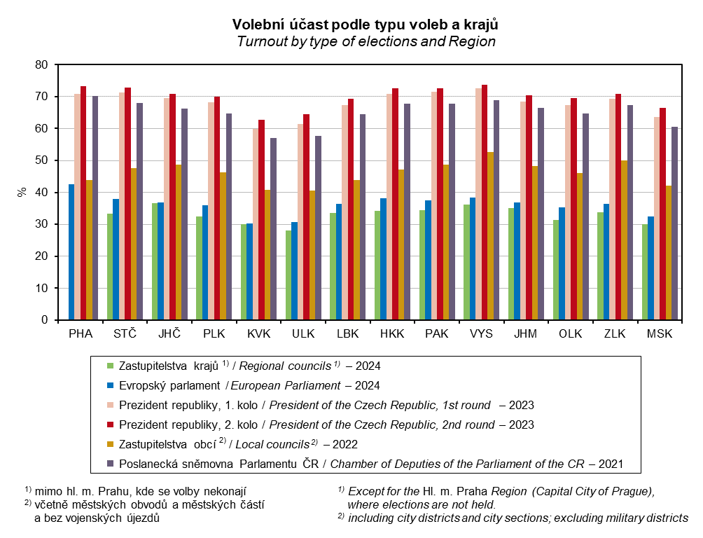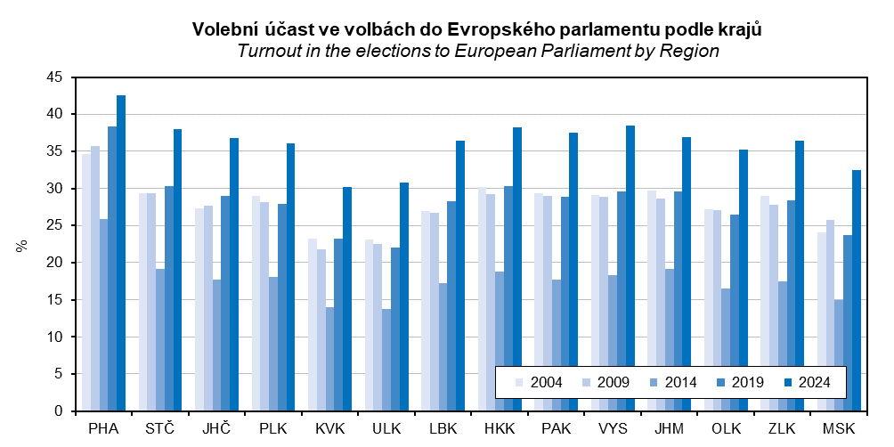Graf 54 Volební účast ve volbách do Evropského parlamentu podle krajů