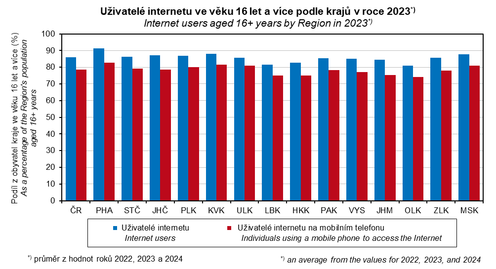 Graf 41 Uživatelé internetu ve věku 16 let a více podle krajů v roce 2023