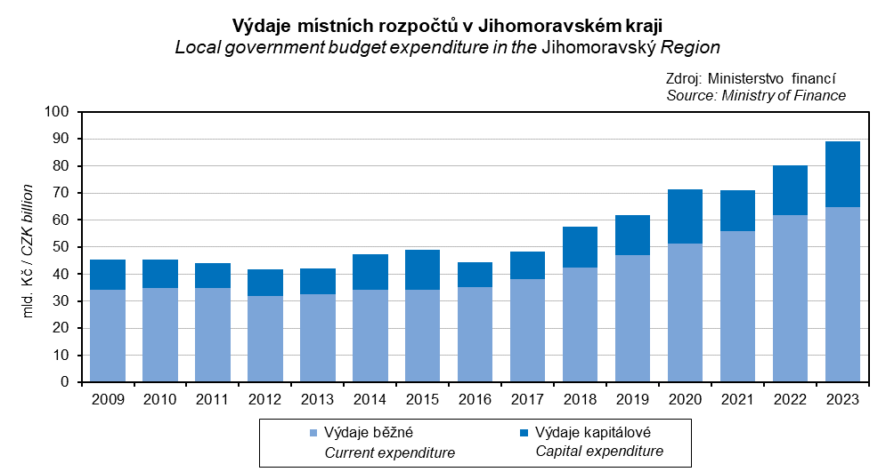 Graf 16 Výdaje místních rozpočtů v Jihomoravském kraji