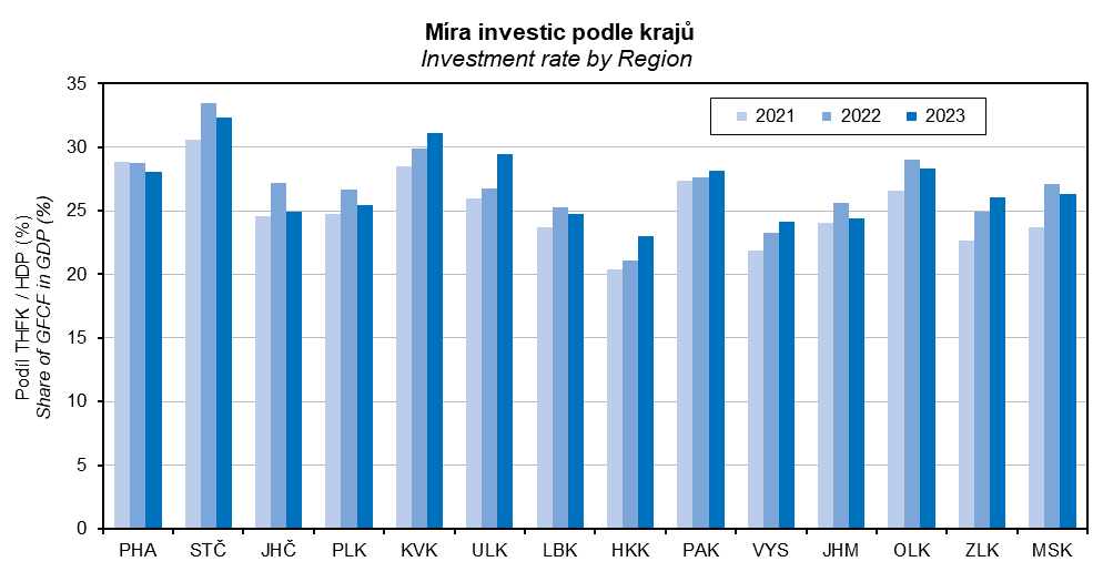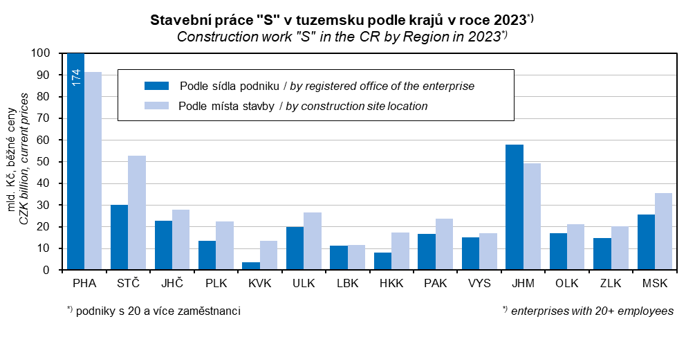 Graf 35 Stavební práce "S" v tuzemsku podle krajů v roce 2023