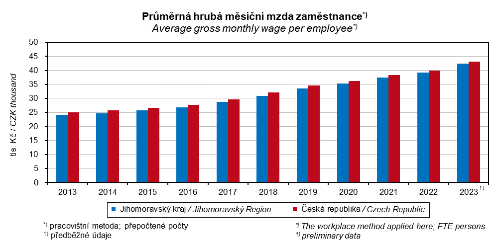 Graf 19 Průměrná hrubá měsíční mzda zaměstnance