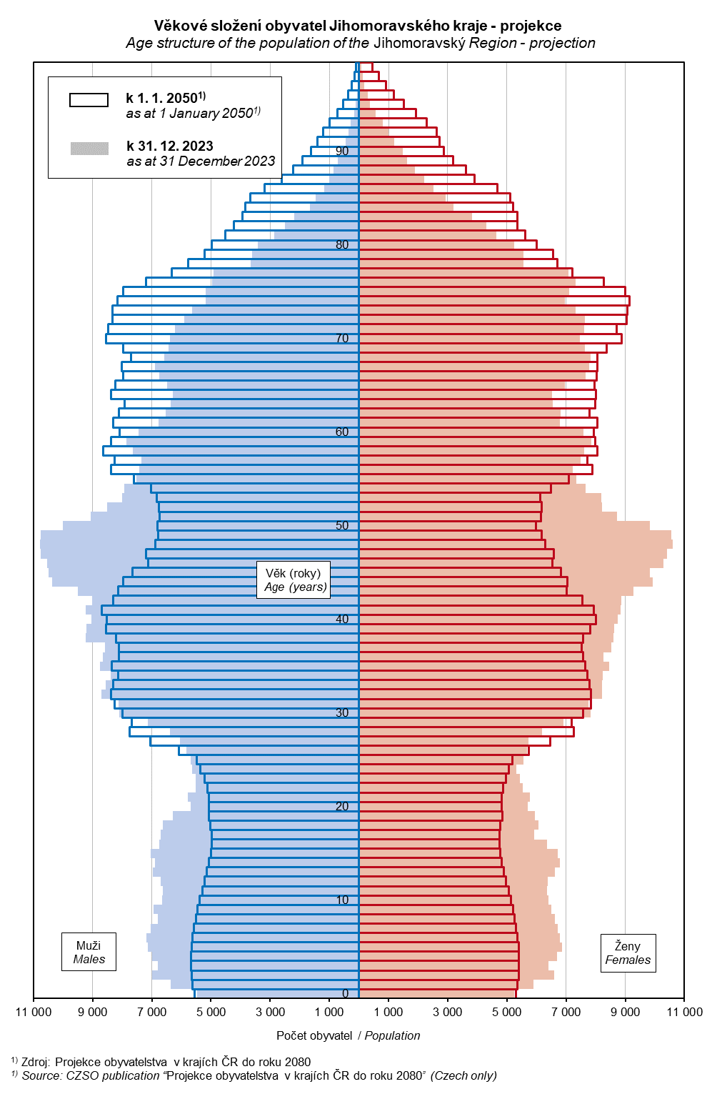Graf 10 Věkové složení obyvatel Jihomoravského kraje - projekce