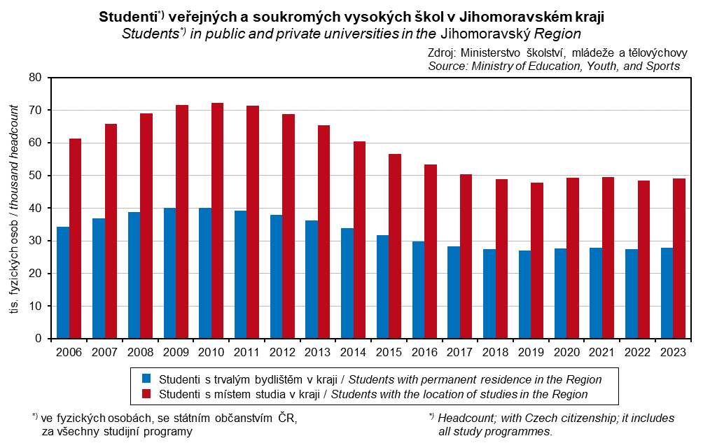 Graf 44 Studenti veřejných a soukromých vysokých škol v Jihomoravském kraji