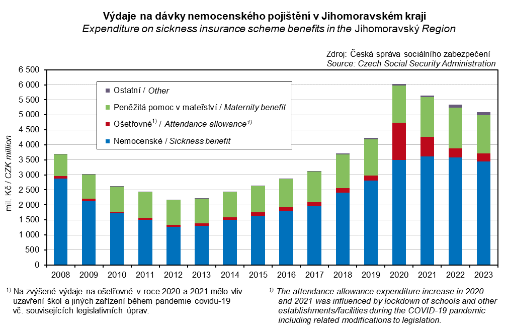 Graf 50 Výdaje na dávky nemocenského pojištění v Jihomoravském kraji