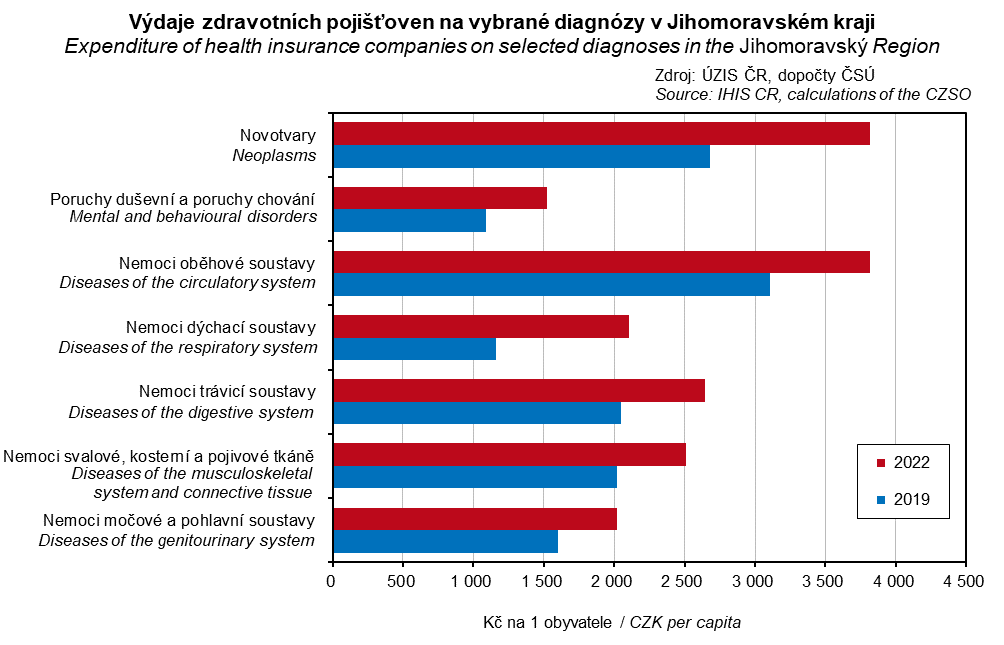 Graf 49 Výdaje zdravotních pojišťoven na vybrané diagnózy v Jihomoravském kraji