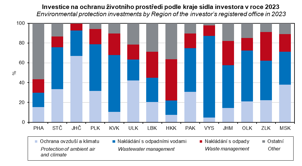 Graf 4 Investice na ochranu životního prostředí podle kraje sídla investora v roce 2023