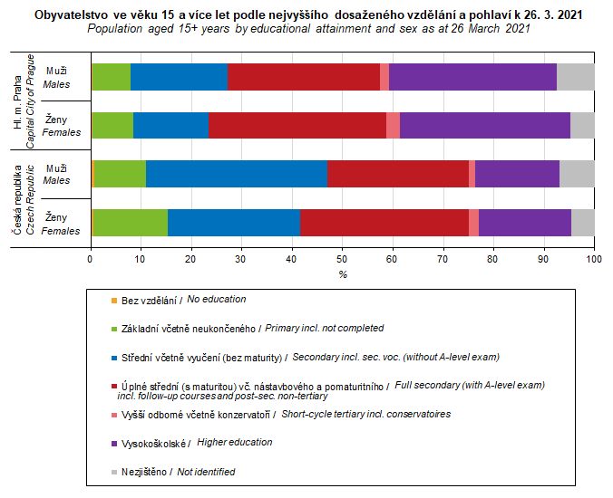 Graf 51. Obyvatelstvo ve věku 15 a více let podle nejvyššího dosaženého vzdělání