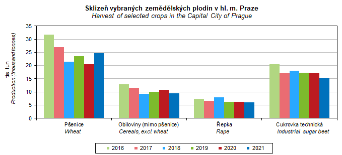 Graf 24. Sklizeň vybraných zemědělských plodin v hl. m. Praze