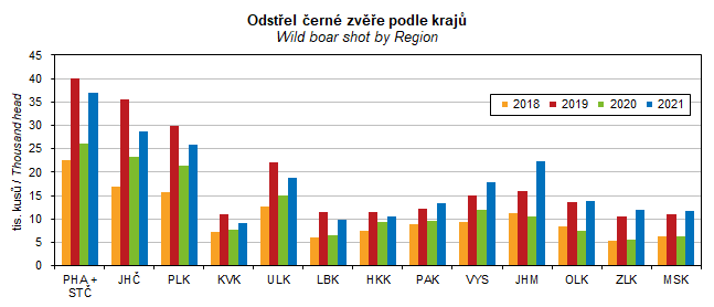 Graf 26. Hospodářská zvířata podle krajů k 1. 4. 2022