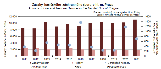 Graf 47. Zásahy hasičského záchranného sboru v hl. m. Praze