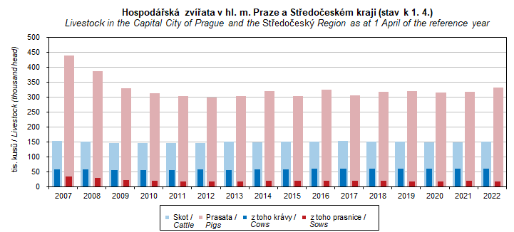 Graf 25. Hospodářská zvířata v hl. m. Praze a Středočeském kraji (stav k 1. 4.)