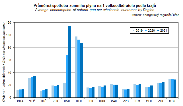 Graf 31. Průměrná spotřeba zemního plynu na 1 velkoodběratele podle krajů
