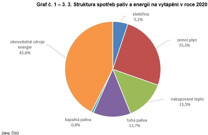 Graf č. 1 – 3. 3. Struktura spotřeb paliv a energií na vytápění v roce 2020