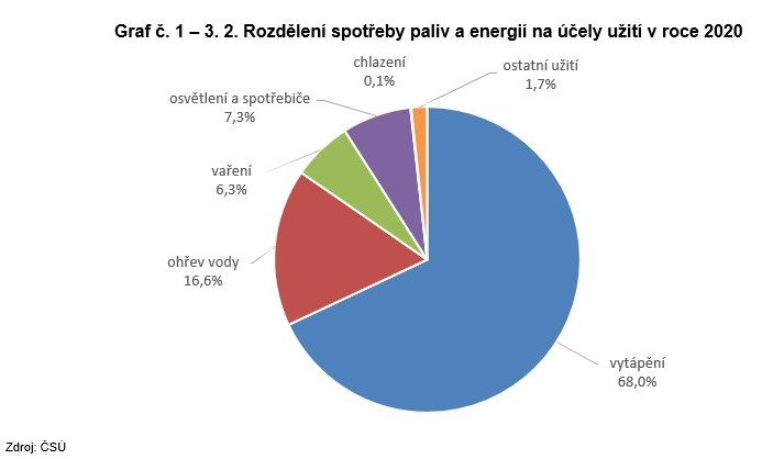 Graf č. 1 – 3. 2. Rozdělení spotřeby paliv a energií na účely užití v roce 2020