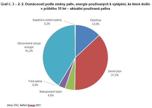 Graf č. 3 – 2. 2. Domácnosti podle změny paliv, energie používaných k vytápění, ke které došlo v průběhu 10 let – aktuální používaná paliva