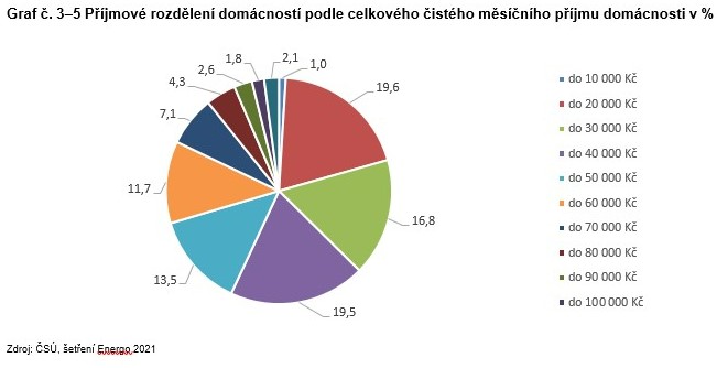 Graf č. 3 – 5. Příjmové rozdělení domácností podle celkového čistého měsíčního příjmu domácnosti v %