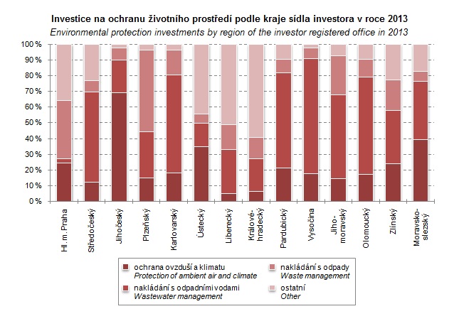 Graf 3-1. Investice na ochranu životního prostředí podle kraje sídla investora v roce 2013