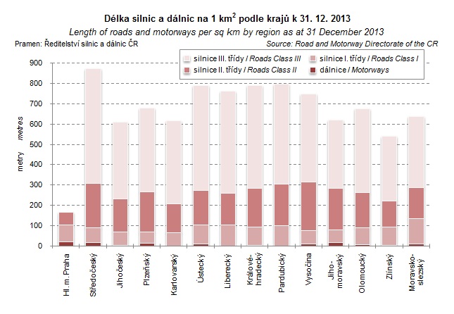 Graf 17-1. Délka silnic a dálnic na 1 km