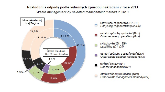 Graf 3-4. Nakládání s odpady podle vybraných způsobů nakládání v roce 2013
