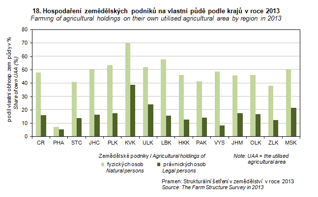 Graph 18. Farming of agricultural holdings on their own utilised agricultural area by region in 2013