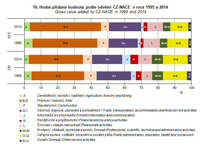 Graph 10. Gross value added by CZ-NACE in 1995 and 2014