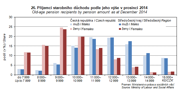 Graph 26. Old-age pension recipients by pension amount as at December 2014