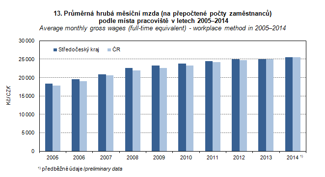 Graph 13. Average monthly gross wages (full-time equivalent) - workplace method in 2005–2014