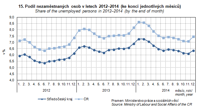 Graph 15. Share of the unemployed persons in 2012–2014 (by the end of month)