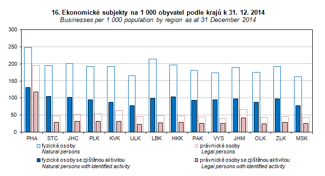 Graph 16. Businesses per 1 000 population by region as at 31 December 2014