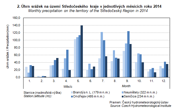 Graph 2. Monthly precipitation on the territory of the Středočeský Region in 2014