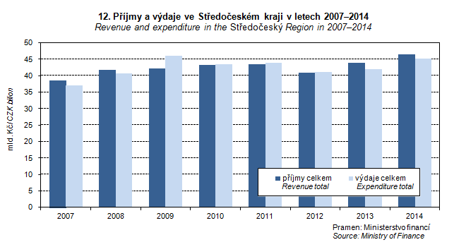 Graph 12. Revenue and expenditure in the Středočeský Region in 2007–2014
