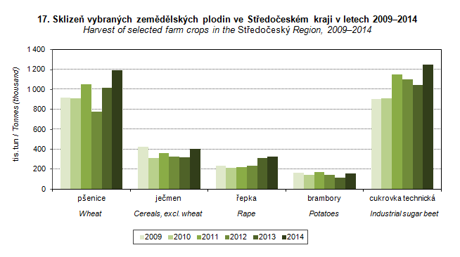 Graph 17. Harvest of selected farm crops in the Středočeský Region, 2009-2014