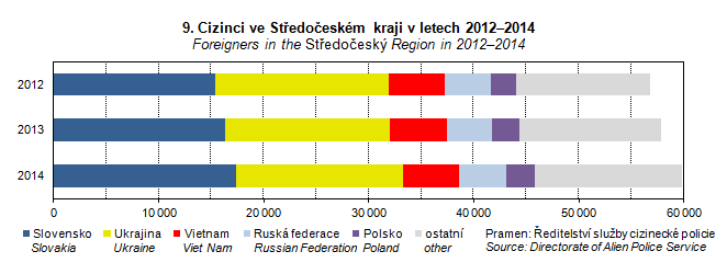 Graph 9. Foreigners in the Středočeský Region in 2012–2014