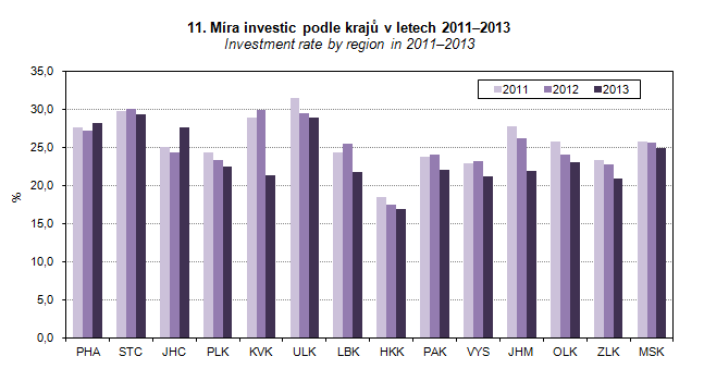Graph 11. Investment rate by region in 2011–2013