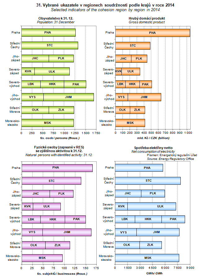 Graph 31. Selected indicators of the cohesion region by region in 2014