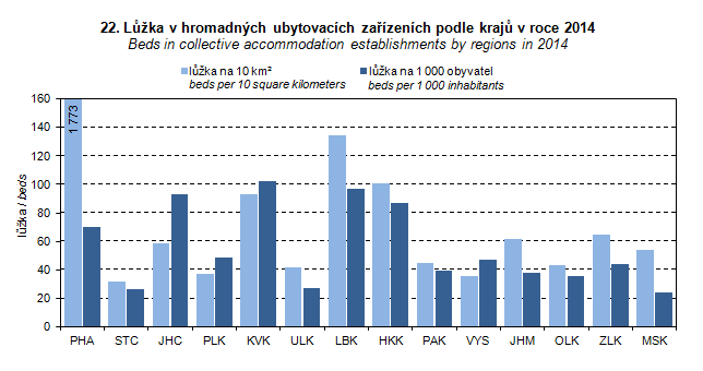 Graph 22. Beds in collective accommodation establishments by regions in 2014