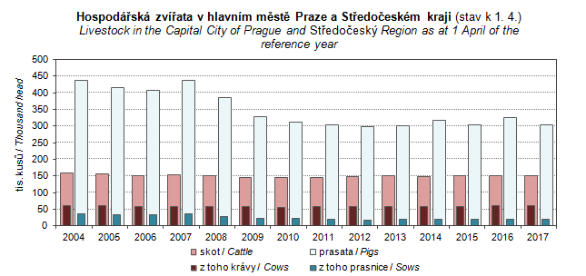 Graph 26. Livestock in the Capital City of Prague and the Středočeský Region as at 1 April of the reference year