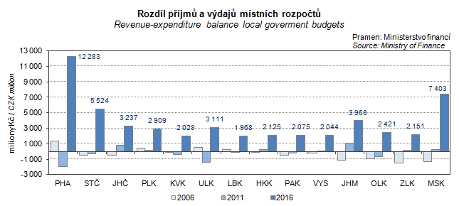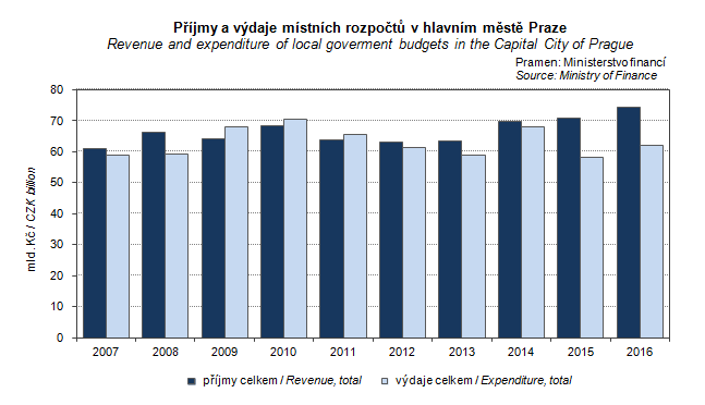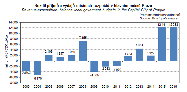 Graph 16. Revenue and expenditure of local government budgets in the Capital City of Prague