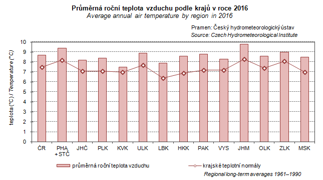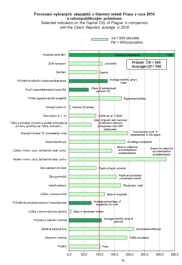 Graph 1. Selected indicators on the Capital City of Prague in comparison with the Czech Republic average in 2016