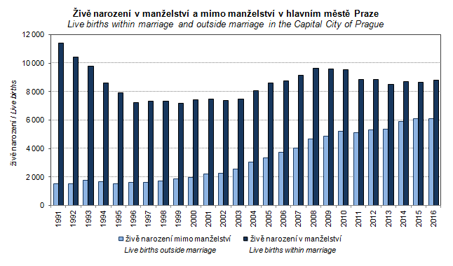 Graph 10. Live births within marriage and outside marriage in the Capital City of Prague