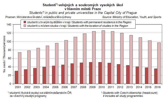 Graph 37. Students in public and private universities in the Capital City of Prague