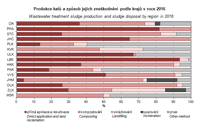 Graph 6. Wastewater treatment sludge production and sludge disposal by region in 2016
